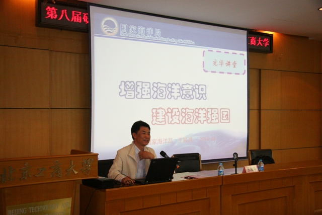 光華講堂走進北工商的首場報告由國家海洋局政策法規和規劃司原司長、高級工程師王殿昌以《增強海洋意識,推進海洋強國建設》為題開講。講座以基礎的海洋知識為開篇,結合近年來國際上出現的海洋爭端熱點問題用我國面臨的海洋保護與海洋爭端實例向大家闡述了增強海洋意識,推進海洋強國建設的迫切性和重要性。他用樸實無華的語言,聚焦我國海洋熱點問題,把海洋戰略與海洋經濟的主題闡釋得清晰明了,深入人心,讓大家深刻認識了海洋并感受了大海的魅力,講座贏得了全場師生的陣陣掌聲。在學生提問環節,王殿昌對研究生們所提出的問題一一給以詳細的解答,不僅解答了同學們的疑問,更讓同學們感受到他對國家和社會的深情,以及對研究生們的關愛。