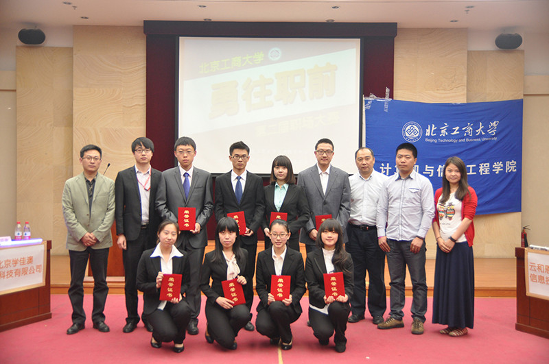 本次大賽模仿《職來職往》節目形式,特別邀請了金道天成信息系統服務公司副總裁吳天宇、上海煙草集團北京卷煙廠人力資源部副主任梅鎖華、北京學佳澳教育科技有限公司就業部經理任明旗、云和恩墨信息技術有限公高級工程師史躍東擔任現場評審嘉賓。比賽分為自我介紹、壓力面試、情境體驗、最終判定四個環節。經過前期初賽層層選拔,經貿132張乃馨等來自全校各學院的八名選手晉級決賽。選手們逐個登場,在各具特色的自我介紹并展示個人才能后企業嘉賓逐一提問,針對選手性格特點、職業規劃進行全面剖析和準確點評。選手們的回答、嘉賓的點評不時贏得在場觀眾的熱烈掌聲和笑聲,評委們特別提醒學生應懂得如何結合自身優勢選擇正確的職業目標,如何不斷的提升自我、更加清楚認識自身的不足與優勢。
