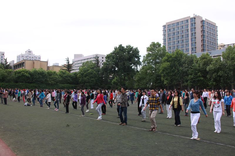 5月14日,教職工“千人廣播操”彩排在阜成路校區舉行。來自14個分工會的近千名教職工參加了彩排。黨委副書記、工會主席張德玉親臨現場指導。