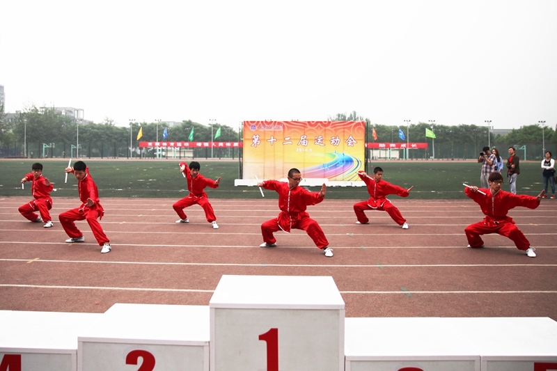 從細雨朦朧到雨過天晴,同學們熱情不減,揮舞著手中的大旗,呼喊著各自的口號,一次又一次為場上的運動員加油。各項賽事結束后,由我校十幾名學生組成的武術表演隊帶來了精彩的武術表演與雙節棍表演,引來同學們陣陣歡呼,將閉幕式的氣氛推向高潮。