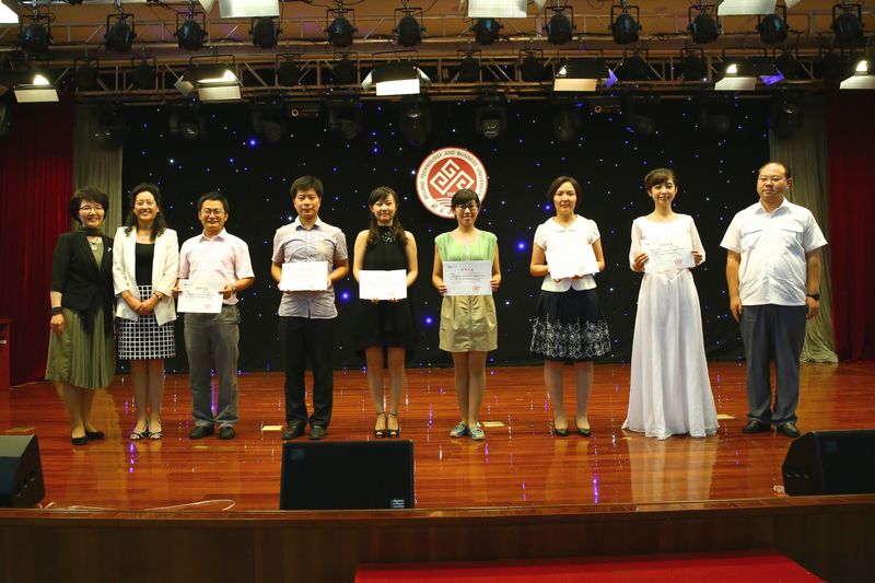 經過專家評委的嚴格評審,來自機關黨委的鄭澤、武晶晶、張倩、馬思瀟等16人朗誦的《我驕傲,我是中國人》和離退休黨總支的潘潔朗誦的《那時候》榮膺一等獎。經濟學院楊瓊、藝傳學院王妍慧、夏京春、韓卓和外國語學院劉靖榮獲二等獎,來自后勤處、外國語學院、商學院、計信學院和理學院的六支隊伍榮獲了三等獎。機關黨委、藝傳學院、外國語學院、商學院、食品學院、材機學院、離退休工作處獲得了優秀組織獎。與會嘉賓和領導為獲獎老師頒發了證書。大家合影留念,將美好的瞬間化作永恒的記憶。