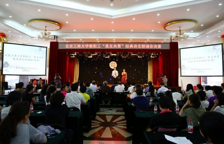 經過兩周的準備,12支參賽隊伍的35名選手在決賽中更加彰顯了我校教職工的素養與魅力,朗誦聲情并茂、表演更具感染力。一篇篇朗誦:《祖國啊,我親愛的祖國》《我的祖國》《我驕傲,我是中國人》《祖國母語》《再別康橋》《香山紅葉》《讀書人是幸福人》等,使觀眾深深沉浸在經典詩文的意境中。表演中既有近20名教師帶來的氣勢蓬勃的配樂誦讀,也有伴有優美舞蹈的個人朗誦,還有配合話劇表演的雙人誦讀。朗誦展示了選手們對經典文化的熱愛、對經典詩文的深刻理解以及出色的表演才能。配樂、視頻、參賽選手們體現時代感的服裝等完美烘托了文學經典的內涵。選手們真摯的感情、深情的朗誦、獨具匠心的設計和表演感染了在場的每一個人,博得評委和觀眾的由衷贊賞和熱烈掌聲。