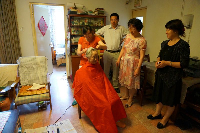 早晨7:00,后勤部門(mén)黨總支委員全部來(lái)到學(xué)校,9個(gè)委員共分四組深入校內(nèi)離休干部、70歲以上的空巢老人家中進(jìn)行看望和慰問(wèn),還上門(mén)為3位行動(dòng)不便的老人免費(fèi)理發(fā)。老同志們非常感動(dòng),他們對(duì)后勤部門(mén)黨員入戶慰問(wèn)這一舉措表示由衷的感謝,對(duì)送來(lái)的主食和防暑防蚊用品也非常歡迎,老同志們認(rèn)為他們?cè)谕诵萆罾镆廊桓惺艿搅它h的關(guān)懷和組織的溫暖。慰問(wèn)過(guò)程中,有的老同志提前準(zhǔn)備了茶水熱情迎接;有的老同志流下了激動(dòng)的淚水……老同志的深情厚意,也感動(dòng)了前來(lái)慰問(wèn)的總支委員們,大家紛紛表示,這些老同志都是曾經(jīng)為了學(xué)校發(fā)展做出過(guò)重要貢獻(xiàn)的,今后我們也一定要多關(guān)心老同志,竭盡全力為老同志解決生活中的困難,有些總支委員還留下了個(gè)人聯(lián)系方式,爭(zhēng)取為老同志提供更周到、更及時(shí)的服務(wù)。