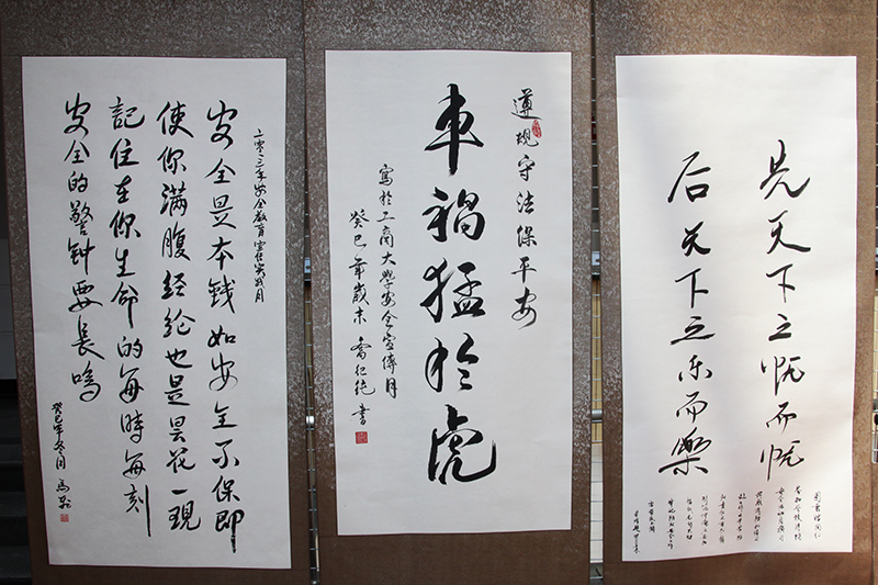 本次活動中各單位高度重視,積極發動師生參與,踴躍投稿。黨委副書記盧思鋒親自帶領專家團隊主持本次大賽的作品評選工作。校圖書館結合工作需要組織教職工學習消防知識,并用攝影記錄學習全過程。商學院動員班級制作安全教育宣傳畫和相關網頁內容,一些離退休老師們也提交了相應作品。通過一段時間的集中展示和專家評審,最終書法作品與攝影作品兩項各評選出一等獎一名、二等獎兩名、三等獎三名、優秀獎五名,同時還評選出大賽優秀組織獎兩名。