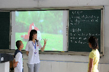 大家都早早地起床,早飯后就迅速來到了教學(xué)樓。在樓道中能聽到各班孩子們朗朗的讀書聲。通過自我介紹,志愿者們和同學(xué)們建立起了信任。體育課上,志愿者組織同學(xué)們做游戲,別開生面;禮儀課上,老師為大家講述了一些禮儀方面的知識,并進(jìn)行了文明禮儀知識競賽,同學(xué)們都積極參與,收獲頗豐;電影課上,志愿者通過播放電影為同學(xué)們講解電影的基本知識,形式生動有趣,贏得了同學(xué)們的歡迎。