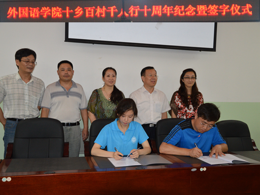 7月7日,外國語學(xué)院領(lǐng)導(dǎo)班子全體成員來到交道中學(xué),親切慰問實(shí)踐團(tuán)成員并參加外國語學(xué)院“十鄉(xiāng)百村千人行”十周年紀(jì)念暨簽字儀式。