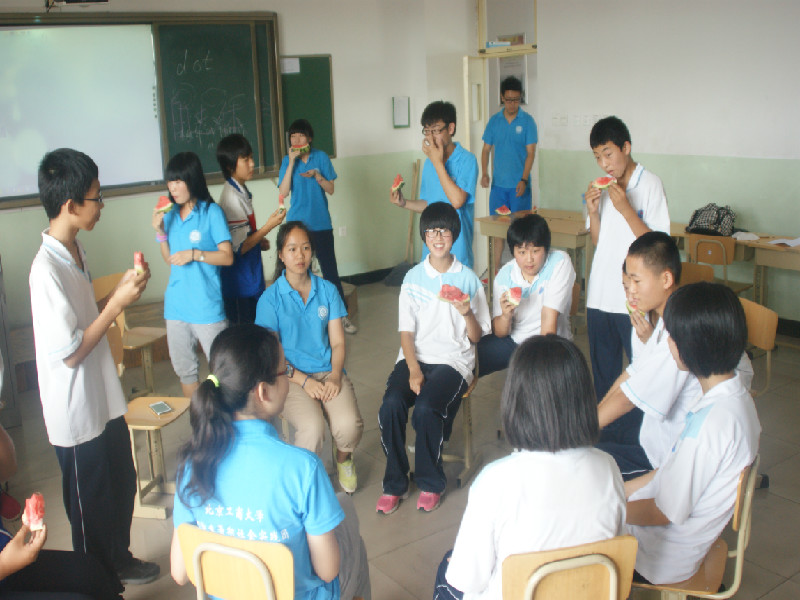7月10日是外國語學院在交道中學實踐的最后一天。和往日一樣,交道中學的同學們按時來到教室,成員們為孩子們召開了最后一次班會。首先,實踐團成員們為同學們播放了告別短片,有成員們認真教學的身影,還有同學們好奇求知的眼神;有一起制作的精美手工,還有一起學習舞蹈時的優美身姿;有運動場上一同揮灑汗水的場面,還也有社團課上激情辯論的瞬間。面對即將到來的分別,大家紛紛流下了不舍的淚水。隨后,實踐團成員們走上講臺,臨別寄語。帶著幾天來的感謝與不舍,他們提出殷切希望,希望孩子們能夠牢記在夏令營中的收獲,珍惜青春時光,勤奮學習,健康成長,爭取早日實現夢想。雖然活動即將結束,但師生們一同度過的時光將作為最美好的回憶珍藏在彼此心中,成為大家前進的動力。