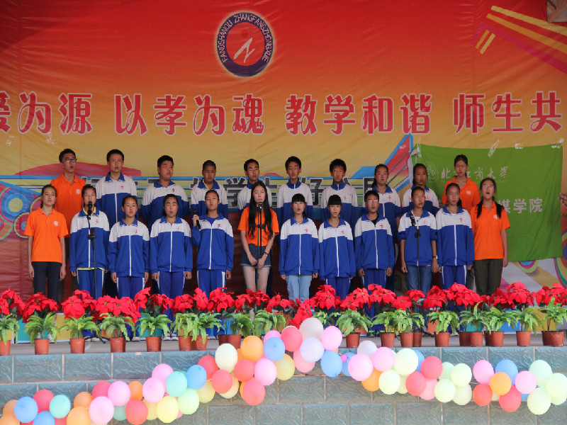 今天是經濟學院暑期社會實踐暨暑期支教夏令營活動的最后一天,轉眼間,“獻青春年華,行夢想之路”的支教旅程已經接近尾聲。經濟學院與房山五中舉辦了2014年暑期夏令營匯報演出,校黨委副書記盧思鋒、房山區文委副主任(原房山團教工委書記)劉開平、周口店鎮黨委書記方玉祥、房山五中校長馬連山、經濟學院黨總支副書記馬韜光以及學校相關部門負責人共同觀看了匯報演出。