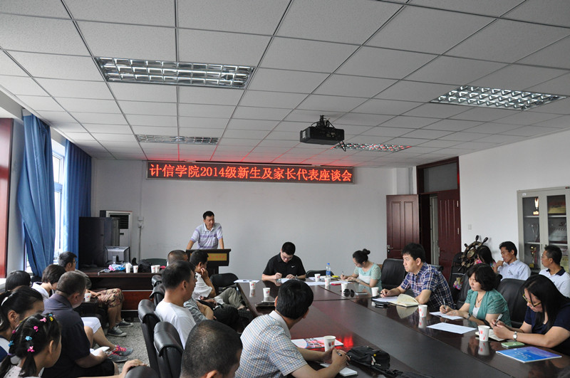 為做好迎新工作,8月17日,計信學院召開了2014級新生及家長代表座談會,聽取新生及家長代表意見建議。30余名新生和家長代表,學院黨總支書記陳誼、副書記張凱偉參加了會議。
