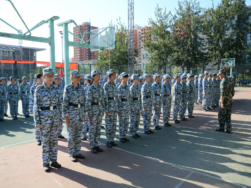 天公作美,讓一場秋雨帶走了連續幾天的悶熱,早上七點半,參加軍訓的藝傳女生已經在行政樓西側訓練場地集合完畢,大家身著藍色迷彩服,頭戴軍帽,開始了一天的軍訓生活。在開始訓練之前,各班教官都很認真的教大家如何佩戴腰帶和胸牌,細心的給每一位同學檢查,親手給不到位的同學糾正錯誤。
