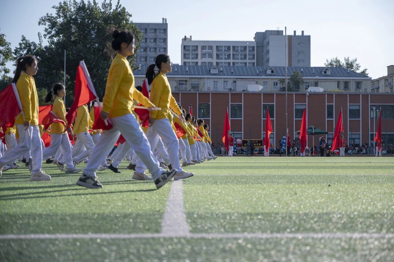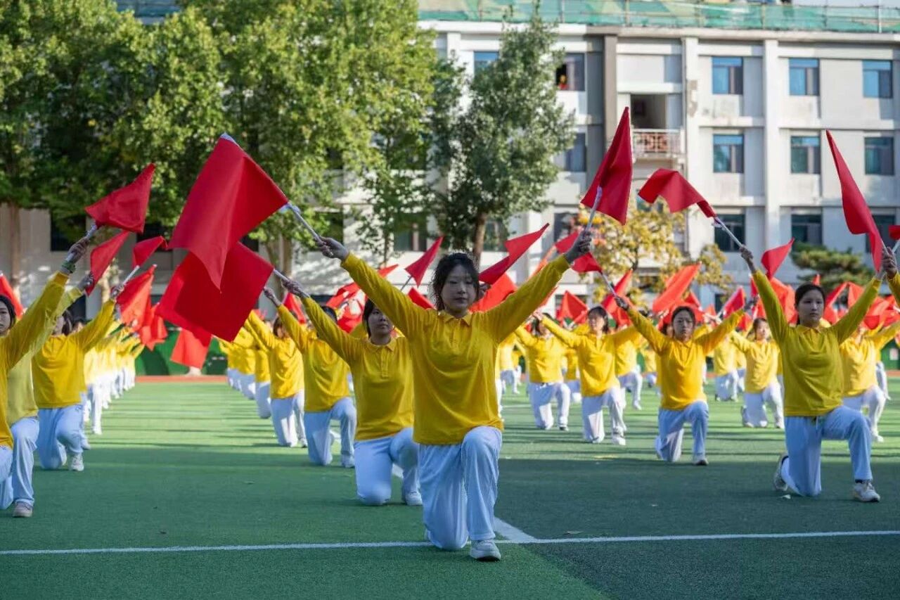 《團結就是力量》的激昂旋律奏響賽場樂章,旗操方陣步伐整齊踏上綠茵場進行團體操表演。他們動作有力,眼神堅定,以颯爽的動作散發青春的活力,盡顯新生學子的風采。