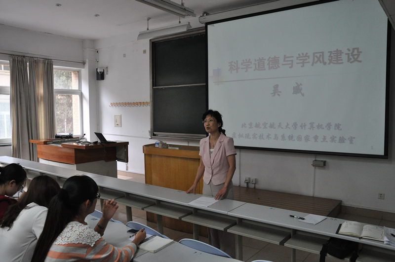為了進一步加強研究生科學道德和學風建設,9月12日,計算機與信息工程學院邀請北京航空航天大學博士生導師吳威教授在阜成路校區為2014級研究生做了關于“科學道德與學風建設”的講座。計信學院黨總支書記陳誼教授、副院長于重重教授以及計信學院全體研究生新生參加了此次活動。