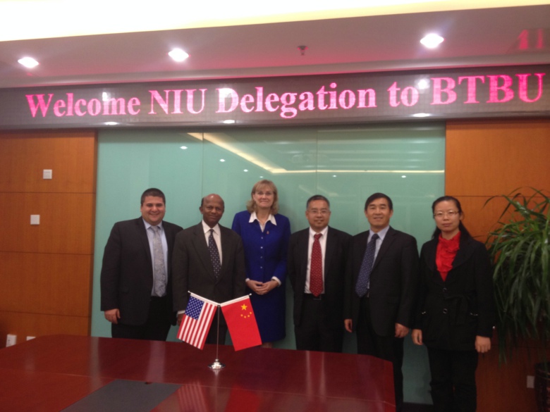 美國北伊利諾伊大學副校長瑞•艾登(Ray Alden)、校長助理保羅•普拉海科(Paul Prahaker)、商學院副院長伊麗莎白•貝斯(Elisabeth Beth)、商學院運營管理系主任劉昶、商學院MBA項目負責人安東尼•普瑞斯頓(Anthony Preston)和中國事務負責人吳蓓,我校國際交流與合作處處長何明珂、副處長劉影、人事處處長張曉堂、教育研究中心主任施楓、計算機與信息工程學院院長蔡強、副院長郭培源、副院長姜同強、經濟學院副院長李書友、商學院黨總支書記歐陽愛平、副院長楊浩雄參加了會談和會見。