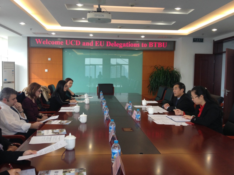 受學校委托,國際交流與合作處何明珂處長與兩所學校代表團成員進行了會談。他對兩所學校的來訪表示歡迎,并介紹了我校近期的國際化發展情況。何明珂表示我校非常愿意與兩校保持緊密的合作關系,開展各類項目的合作和交流。在與愛爾蘭都柏林大學的會談中,雙方就兩校合作的3+1項目、3.5+0.5項目的具體實施情況和2015年的實施計劃進行了交流,并就兩校擬在將來開展的學生互換項目、研究生合作項目和教師交流項目等內容交換了看法。在與歐洲大學的會談中,何明珂表示歐洲大學是我校近期新增的一所國際合作伙伴,也是我校在瑞士的第一所合作院校,兩校在學科方面有很多相似之處,雙方計劃在學生和教師交換項目方面開展合作和交流,也非常希望歐洲大學能夠派學生來我校學習和交流。