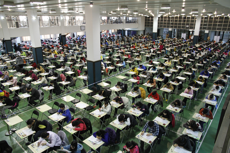 為進一步加強考試管理,促使學生更加重視考試,進而大力促進考風建設,培養優良教風、學風和校風,學校決定對一、二年級期中考試的部分課程試行全校集中式考試。集中考試考場設在良鄉校區文體館一層和三層,總共可以容納一千多人同時進行考試。