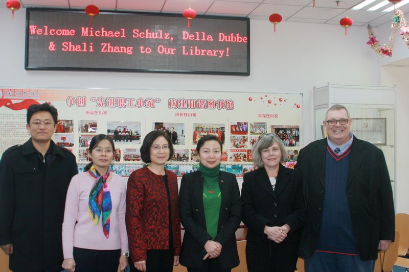 11月21日,美國(guó)蒙大拿州立大學(xué)圖書(shū)館總館館長(zhǎng)張沙麗、卡爾森圖書(shū)館館長(zhǎng)麥克﹒舒茨(Michael Schulz)、海倫娜學(xué)院圖書(shū)館館長(zhǎng)戴拉﹒杜碧(Della Dubbe)一行3人來(lái)到我校圖書(shū)館參觀訪問(wèn)。圖書(shū)館班子成員熱情接待了外國(guó)同行。