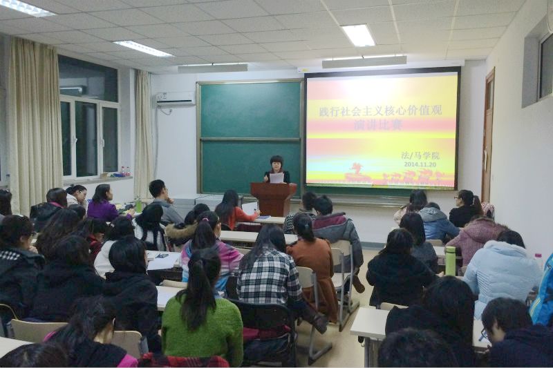 文四英對本次演講比賽給予肯定。她為同學們講解了黨的十八大提出的社會主義核心價值觀以及對于依法治國和法治中國的理解,要求同學們應多關注學術前沿,認真學習中國哲學以及傳統文化,把自己以及班級整體團結、求真的一面展現出來。