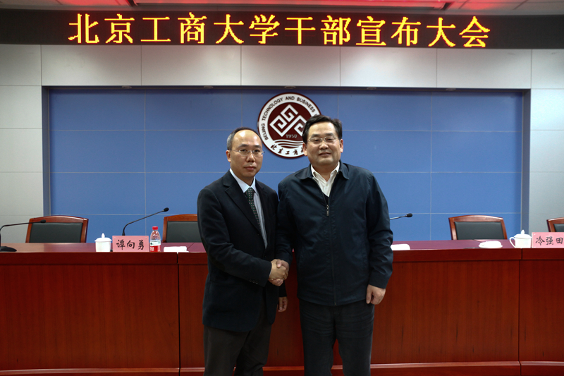 11月26日下午,北京工商大學干部宣布大會在阜成路校區召開。市委教育工委委員、干部處處長陳江華,市委組織部宣教政法干部處處長冷強田等出席大會,校領導、學校中層正職干部等40余人參加大會。會議由黨委書記譚向勇主持。