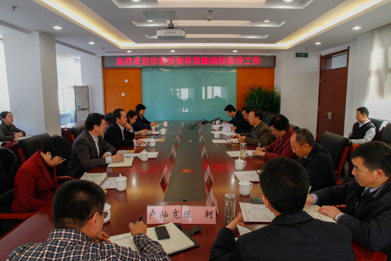北京市教委鄭登文副主任在聽取學校工作有關匯報后,對學校內涵發展,質量提升的發展規劃以及近期所做的實際工作予以充分肯定,并對高等教育如何發展,如何切實服務于首都建設提出了三點看法:第一,要堅持立德樹人,注重對學生進行社會主義核心價值觀教育;第二,要堅持內涵發展、特色辦學,注重走高、精、尖發展道路,不斷提高科研能力和創新水平,為京津冀一體化發展提供人才支持;第三,要加強師資隊伍建設,加強教育的國際合作與交流,建設平安校園,不斷提高治校理校的能力。對于學校在發展中所遇到的問題,他表示北京市教委會全力支持學校的建設,盡快建立直接溝通機制和督查協調機制,遇到問題直接溝通、直接洽商,使問題及時解決,工作落到實處。