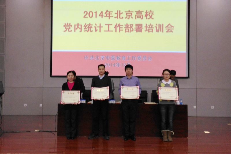 12月9日,市委教育工委召開北京高校2014年黨內統計工作部署培訓會,并對2013年黨內統計工作進行總結和表彰,我校榮獲“黨內統計工作全優單位”稱號。
