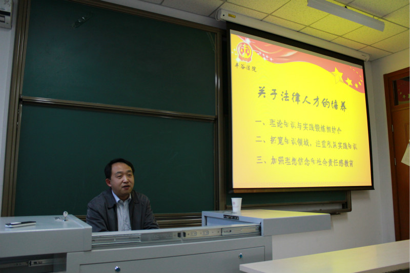 12月10日,平谷區(qū)人民法院院長、學(xué)校聘請的兼職教授、碩士生導(dǎo)師祖鵬應(yīng)邀為學(xué)院師生作了一場題為“淺讀十八屆四中全會決定中的幾個(gè)相關(guān)法治問題”的精彩講座。學(xué)院黨總支書記呂來明教授主持,學(xué)院教師及部分研究生參加了此次講座。