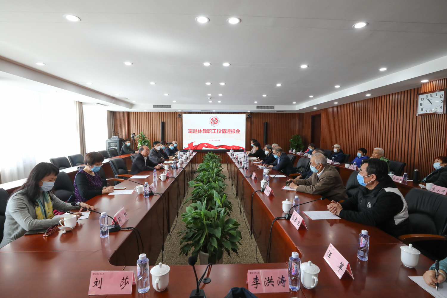 10月10日,學校在良鄉主校區舉行離退休教職工校情通報會,向離退休老同志通報學校發展建設情況。黨委書記黃先開,黨委副書記王偉,副校長龔六堂出席會議。學校第三次黨代會離退休黨代表、離退休黨委委員、校院兩級關工委負責人、黨支部書記和支委、社團負責人、教學督導組專家、民主黨派代表以及學校辦公室、離退休工作處負責人參加會議。會議由學校黨委副書記王偉主持。