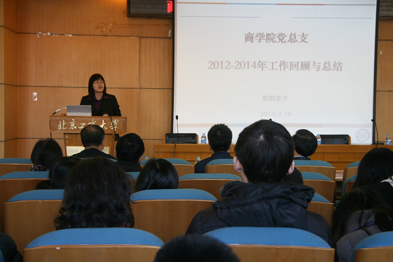 黨總支書記歐陽愛平向大會作了商學院2012年至2014年黨總支工作回顧,商學院黨總支在學校黨委的領導下,緊緊圍繞學院的發展和中心工作,有序開展各項工作,取得了顯著成績,為學院改革、發展與穩定提供了強有力的政治保障。她從黨建工作、學生工作以及工會工作向大會做了詳細匯報。