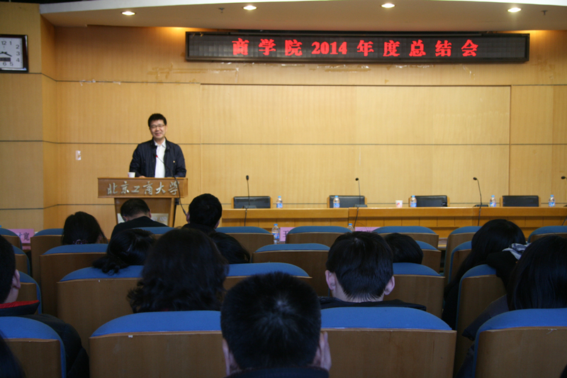 1月16日,商學院在阜成路校區召開2014年度總結會,學校校長孫寶國院士出席會議。學院全體教職工參加會議,大會由黨總支副書記褚才寬主持。
