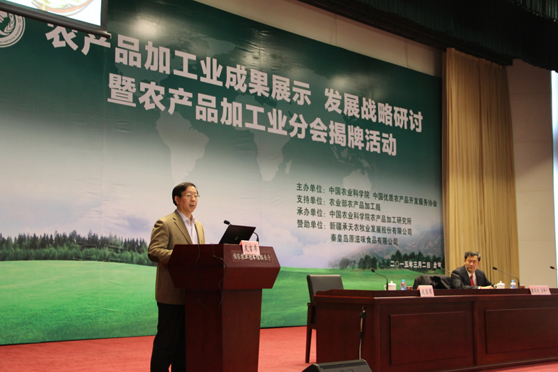3月2日,由中國(guó)農(nóng)業(yè)科學(xué)院、中國(guó)優(yōu)農(nóng)協(xié)會(huì)和農(nóng)業(yè)部農(nóng)產(chǎn)品加工局主辦的“農(nóng)產(chǎn)品加工業(yè)成果展示、發(fā)展戰(zhàn)略研討?hù)咿r(nóng)產(chǎn)品加工業(yè)分會(huì)揭牌活動(dòng)”在中國(guó)農(nóng)科院舉行。我校校長(zhǎng)孫寶國(guó)院士應(yīng)邀出席并作主旨報(bào)告。來(lái)自全國(guó)各地的中國(guó)優(yōu)農(nóng)協(xié)會(huì)農(nóng)產(chǎn)品加工分會(huì)會(huì)員、研發(fā)體系各分中心代表、各省農(nóng)科院加工所所長(zhǎng)以及農(nóng)產(chǎn)品加工龍頭企業(yè)代表等近300名參加了會(huì)議。