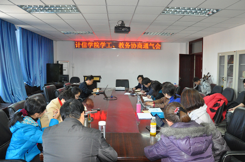 3月11日,計(jì)信學(xué)院召開了首次“學(xué)工、教務(wù)定期協(xié)商通氣會(huì)”,旨在加強(qiáng)學(xué)風(fēng)建設(shè)。院長蔡強(qiáng)、副院長姜同強(qiáng)、黨總支副書記張凱偉及學(xué)院系主任、教務(wù)秘書、輔導(dǎo)員參加會(huì)議。