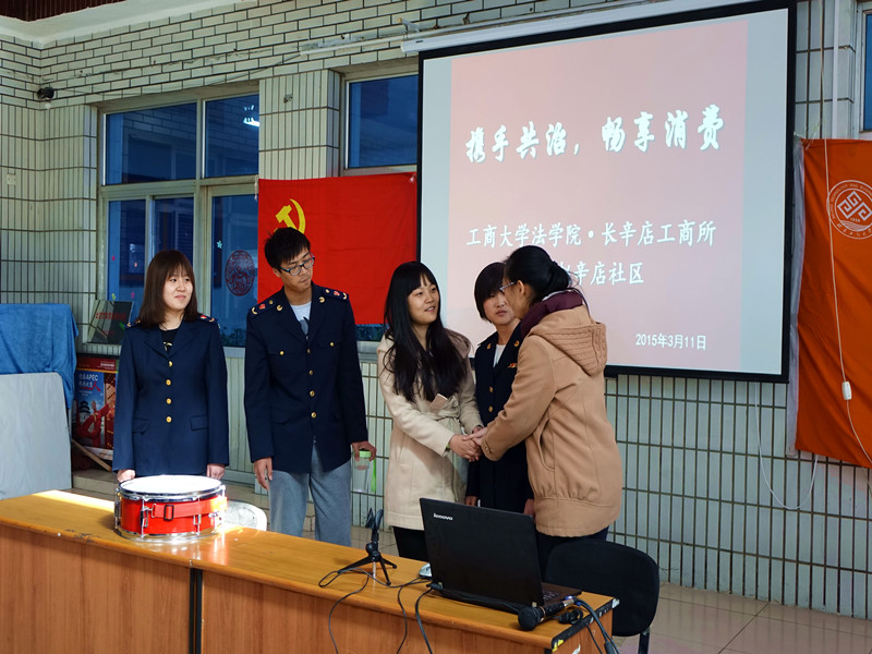 同時,法學院學生黨支部與青年志愿者協會攜手北京市豐臺區長辛店工商所前往豐臺區趙辛店社區,開展了以“攜手共治,暢享消費”為主題的3·15普法宣傳活動。同學們發揮法學專業知識,通過自編自演的小品、三句半等普及法律知識,鼓勵消費者保護自身合法權益。活動中還穿插有獎競答環節,主持人對社區群眾提出關于社會生活中較常見的問題,由同學們為搶答正確者發放不同形式的小獎品。活動結束后,同學們還為大家發放了宣傳冊,接受現場答疑。活動深受社區公民好評,收到了良好的社會效果。