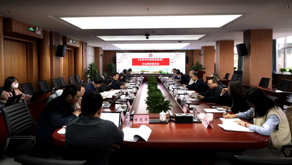 2月22日,北京市人大常委會民宗僑外辦任佩文副主任、二級巡視員魯勝利、外僑處處長張毅和北京市商務局外資管理處處長公萍一行來我校,就北京市外商投資立法相關內(nèi)容進行座談交流。學校黨委常委、副校長劉敏華出席并主持座談。