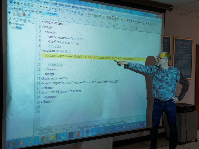 佩特里·奎迪南先生此次擔任客座教學的課程為《交互與體驗》,教學內容主要包括:HTML5語言概述;網絡程序語言的簡要發展歷程;HTML、CSS、Java Script的基本寫法與常用工具;網絡編程語言入門學習資源分享等。針對產品設計類學生的學科背景特點,佩特里先生還穿插講解了編程與設計的關系及發展前景;智能產品、移動互聯網產品的發展前景;計算機編程在設計、游戲領域的應用等內容。講授過程中,他通過多種多樣的教學方法,激發學生興趣,整個授課過程學生參與度極高。作為設計類學生,同學們為自己編寫完成的第一個HTML5程序感到興奮不已,同時對網絡技術與藝術的關系有了更為深刻的認識。