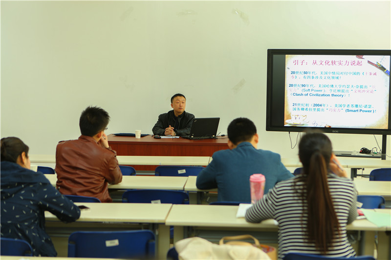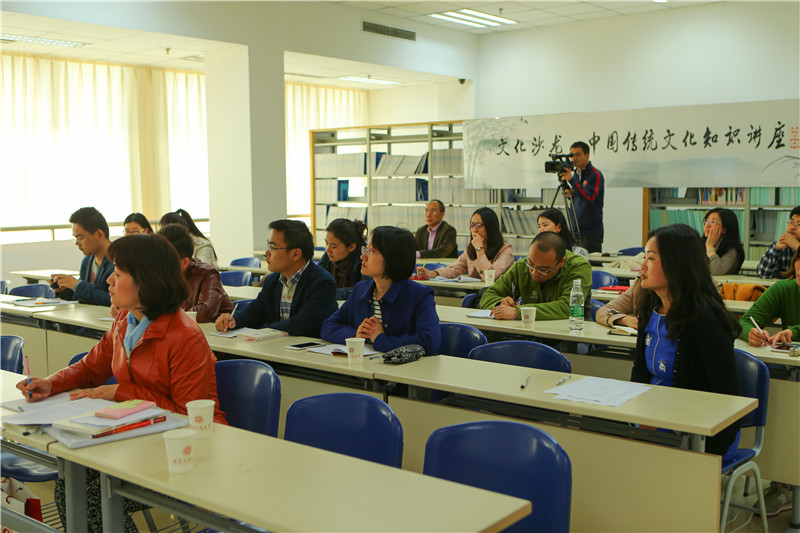 為進一步弘揚中國傳統文化,4月16日,中國傳統文化知識系列講座在阜成路校區開講,首場講座《解讀中國傳統文化》由藝術與傳媒學院副院長、文學博士林剛副教授主講。學校紀委書記邱曉平出席講座。黨委宣傳部部長張春萍、副部長劉晶、圖書館副館長張長恒、部分新聞通訊員、宣傳員以及研究生、本科生等聆聽了講座。