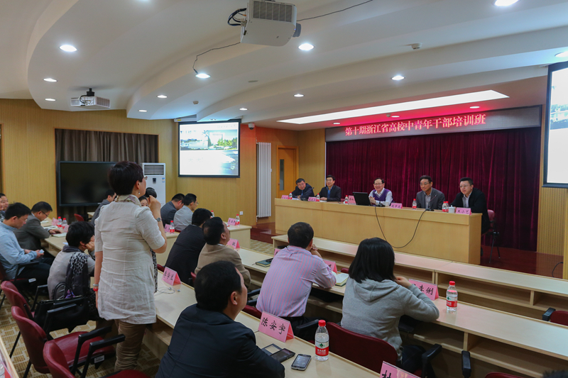 4月21日,國家教育行政院組織的第十期浙江省高校中青年干部培訓班學員一行來我校學習、參觀。校黨委書記譚向勇出席會議并作專題報告。校辦主任王小藝、人事處處長張曉堂、教務處處長魏中龍、科技處副處長孫永波參加會議。
