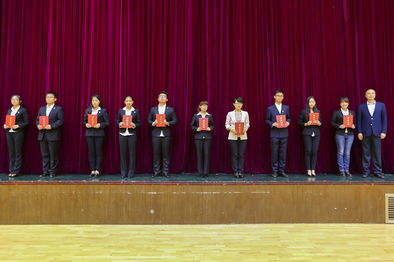 伴隨著激昂的國歌聲,廣大師生全體起立,懷著莊重的愛國主義情懷參加本次五四表彰大會。2014-2015學年間,在校黨委的領導下,我校共青團繼承優良傳統作風,堅定共產主義信念,勤奮學習,勇于實踐,銳意進取,爭創一流,涌現出一大批先進集體和個人。經過各級共青團組織推薦、評選,共評選出43個“先鋒杯”優秀團支部、296名“先鋒杯”優秀團干部、1065名“先鋒杯”優秀共青團員和21名“五四青年先鋒”。 團委書記呂良宣讀了表彰決定,黨委副書記盧思鋒為獲獎集體和個人頒獎。