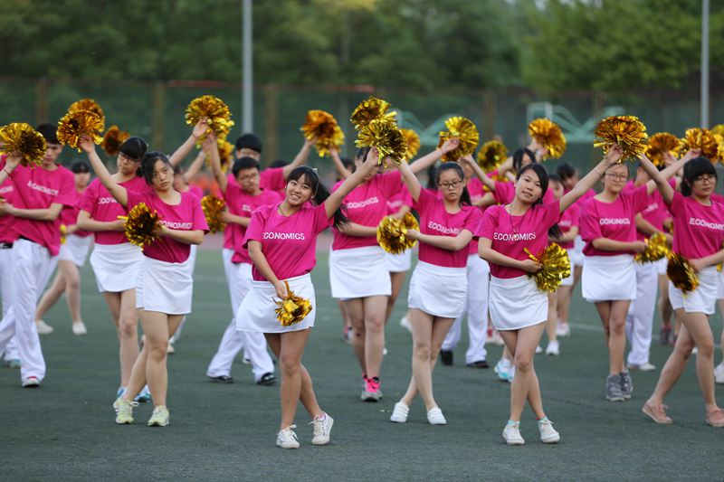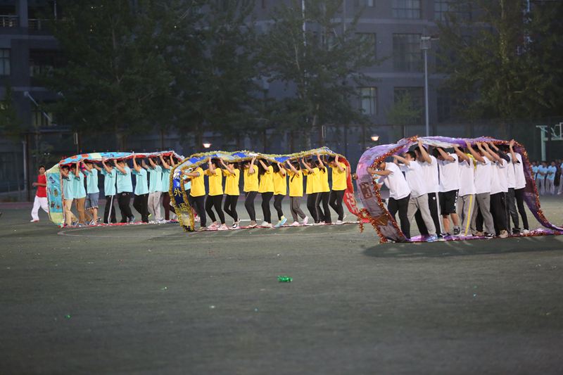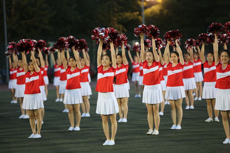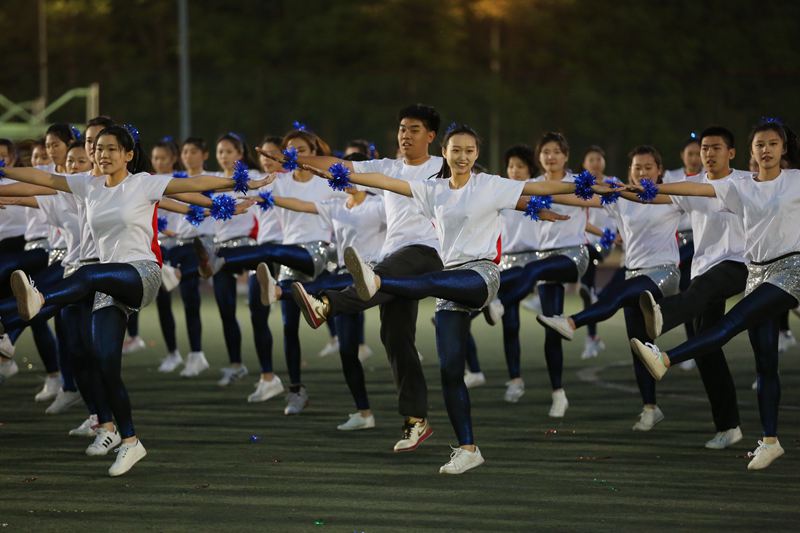 隨著比賽逐漸升溫,食品學院1隊、計算機與信息工程學院齊舞隊共同唱響了青春的贊歌,“甲子工商,金牌食品”、“計信是冠軍”等激昂的口號響徹夜空。順次出場的經院red star隊、藝術與傳媒學院藝漾年華隊、商學院炫舞隊,以各自美輪美奐的表演贏得了現場陣陣掌聲。比賽中,還有來自全校各院同學帶來的心理素質拓展項目表演,在豐富比賽內容的同時,更讓同學們體會到團隊合作的重要性。最后二組隊伍花樣出場,創意不斷:絢麗的服裝裝點著優秀的外語人;精美的隊形變換,手握彩燈如捧星光的計信悅舞隊以及傘花朵朵,表達風雨兼程共成長的商學院多彩隊等給觀眾帶來一場場視覺盛宴。