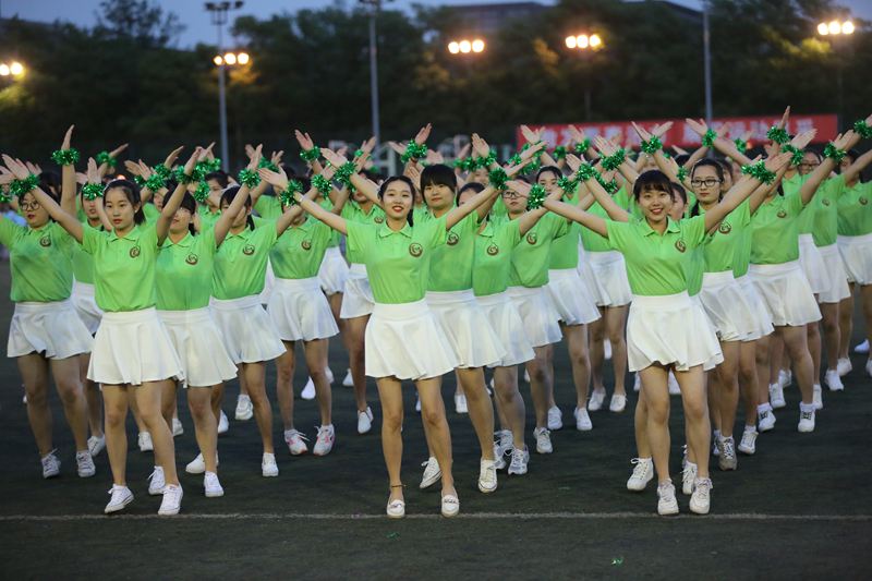 在一片吶喊和掌聲中,比舞拉開序幕。材料與機械工程學院2隊、食品學院2隊、經濟學院red ball隊在律動的音樂“今夜舞起來”中登場,他們用舞蹈彰顯著韻律美,氣質美,青春美,整齊的舞姿和燦爛的笑臉更顯得朝氣蓬勃;來自經濟學院的red young,經過一個月的風雨同行,配合默契,向冠軍發起沖擊;來自商學院的繽紛隊,百名商院學子以颯爽的英姿闡釋著青春的昂揚,恰同學少年,風華正茂;來自藝術與傳媒學院的藝動青春隊也不甘示弱,巾幗英雄,矯健身姿;由體藝部李紅老師指導的阜成路校區同學們帶來的少林棍表演讓人耳目一新,靈活的身姿,熟練的棍法,彰顯著陽剛之氣,將比賽推向高潮。