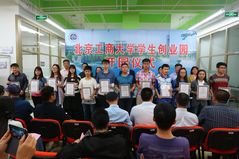 呂素香介紹了學生創業園前期建設及目前運行的相關情況。與會領導為首批入園的10個學生創新團隊和10個創業團隊頒發了入駐許可證,為校內外指導教師頒發了創新創業團隊的聘書。創業學生代表、計信學院周玉琢代表入駐團隊發言,對學校的大力支持表示感謝。嘉賓代表劉剛致辭,他對首批入駐的學生團隊表示贊賞,希望北工商的創客們勇于嘗試,不懼失敗,并預祝北工商支持學生創業的模式能夠成為全國高校學習的樣板。