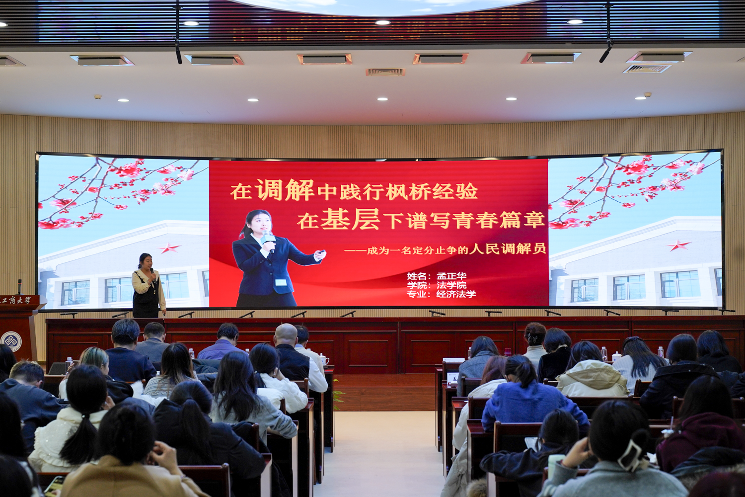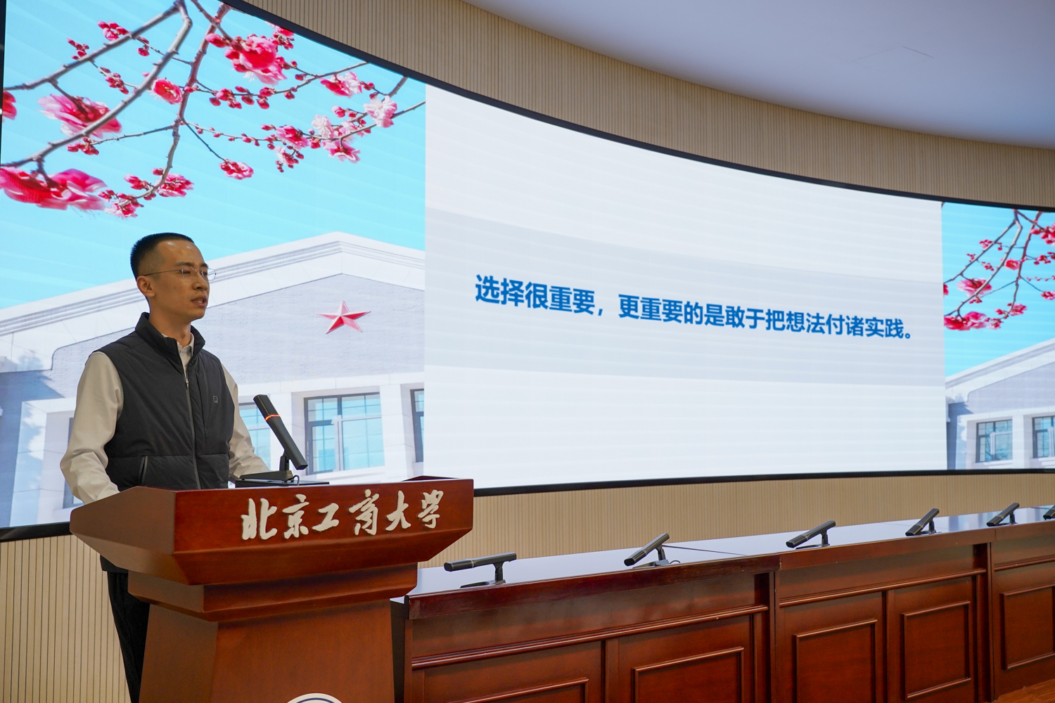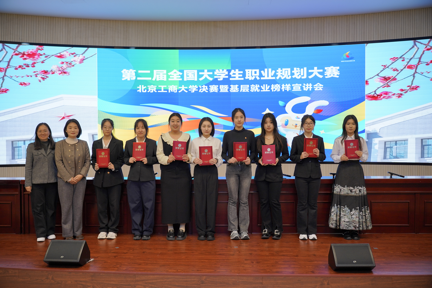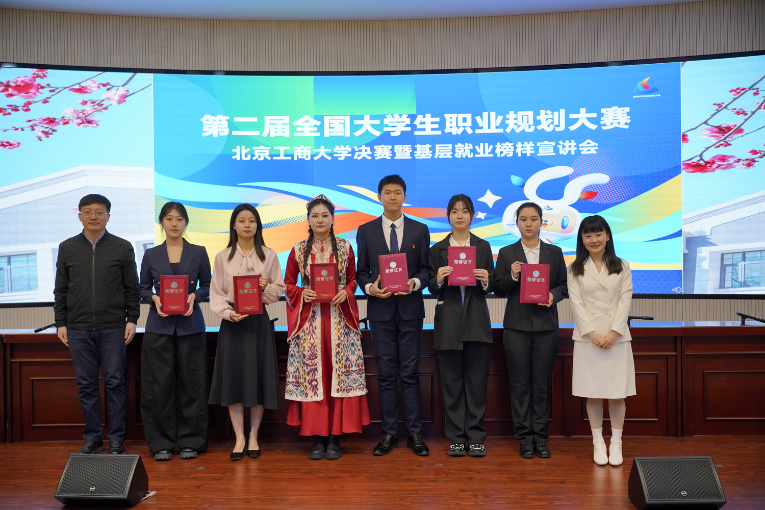 12月25日,第二屆全國(guó)大學(xué)生職業(yè)生涯規(guī)劃大賽北京工商大學(xué)決賽暨基層就業(yè) 榜樣宣講會(huì)在良鄉(xiāng)校區(qū)舉辦。黨委常委、副校長(zhǎng)徐丹丹出席并致辭。招生就業(yè)處處長(zhǎng)石松,學(xué)生處處長(zhǎng)鄭光,團(tuán)委書(shū)記單紫薇,教務(wù)處副處長(zhǎng)、創(chuàng)新創(chuàng)業(yè)學(xué)院院長(zhǎng)蓋曉慶,招生就業(yè)處副處長(zhǎng)劉晶以及各學(xué)院分管就業(yè)工作的副書(shū)記、師生代表參加了此次活動(dòng)。教育部高校學(xué)生司就業(yè)服務(wù)處周紫陽(yáng)、大興區(qū)人力資源和社會(huì)保障局辦公室主任楊晨應(yīng)邀出席。大賽特邀中國(guó)人民大學(xué)、北京外國(guó)語(yǔ)大學(xué)、北京中醫(yī)藥大學(xué)就業(yè)負(fù)責(zé)人及企業(yè)代表?yè)?dān)任評(píng)委。大賽由招生就業(yè)處孫碩主持。