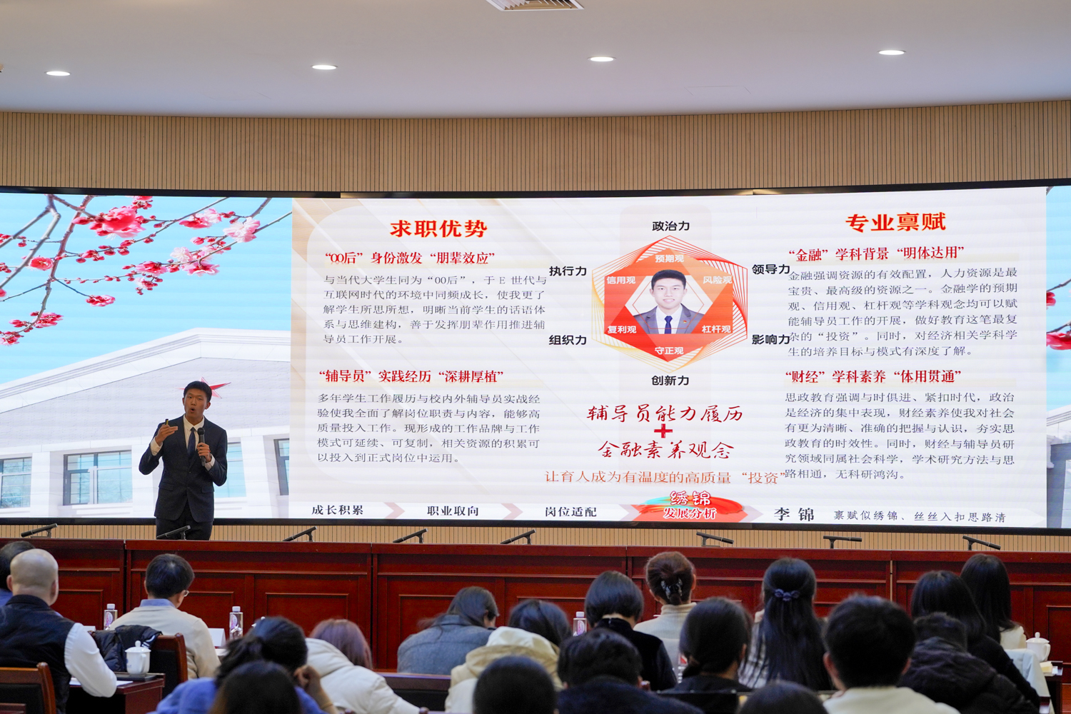 此次大賽同時(shí)也是我校第五屆職業(yè)規(guī)劃大賽、第三屆求職大賽。現(xiàn)場(chǎng)比賽精彩紛呈,選手們用青春的力量描繪夢(mèng)想的未來(lái),有的希望成為秉持正義之劍的律師,有的希望成為記錄真相的記者,有的希望成為發(fā)光發(fā)熱的輔導(dǎo)員,還有的心懷田園情、科技?jí)簦M蔀橐幻罗r(nóng)人,他們不僅僅規(guī)劃著自己未來(lái)的職業(yè)方向,也滿(mǎn)懷著對(duì)國(guó)家,對(duì)社會(huì)、對(duì)時(shí)代的思考和情懷。