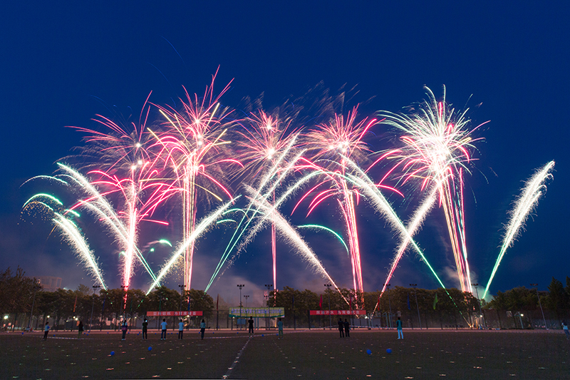 絢爛的煙花盛開于夜空中,璀璨無比。煙花照亮了整個天空,照亮了全體師生的笑臉,照亮了整個北工商。此刻,青春與激情同在,美好與夢想共存。讓我們共同預祝北京工商大學第十三屆運動會取得圓滿成功!