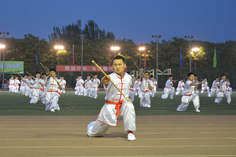來自理學院、食品學院、材機學院阜成路校區(qū)的102名男生身著武術服、手持少林棍豪氣滿懷地步入綠茵場,化身為一個個武術健將,密集的棍法、快速的動作、勇猛的氣勢彰顯著北工商男生的陽剛之氣。