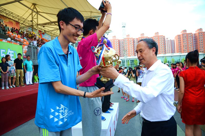 本屆運動會在全體運動員、裁判員、教練員以及志愿者、現場觀眾和學校各部門、各學院的共同努力下取得圓滿成功。黨委副書記盧思鋒老師致詞,他指出,本屆運動會良好地展現了學生們的體育精神,體育精神首先是拼搏精神,其次還有合作、分享、公平和團隊精神等。同學們愉快地參與體育運動中,并在其中傾注了最大的努力,不僅展現了團體的努力與智慧,還有體育、技術與心理等各方面的結合。他殷切地希望廣大同學能夠繼續發揚體育精神,并且把體育精神用到學習和生活中,健康成長,希望大家一起努力,共圓我們的中國夢。