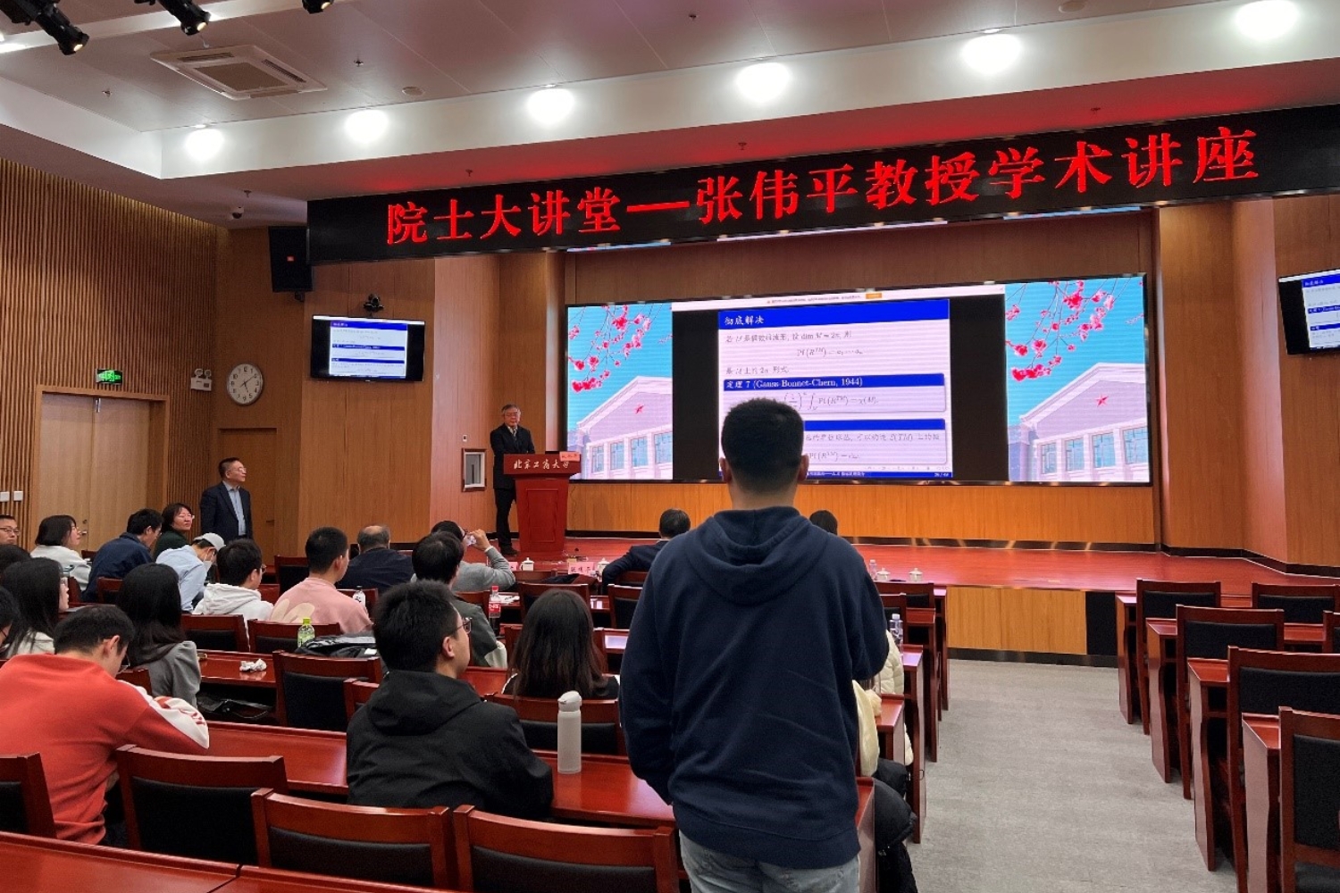 郭建華在總結(jié)講話中對張偉平院士的到來表示了感謝。他表示,張偉平院士是知名數(shù)學(xué)家,在他的科研生涯中一直保有對數(shù)學(xué)的高度熱愛,胸有永攀科學(xué)高峰的偉大情懷,有跳出數(shù)學(xué)看數(shù)學(xué)的灑脫。青年師生要學(xué)習(xí)張偉平院士熱愛數(shù)學(xué)的精神,刻苦學(xué)習(xí)的樂趣和科學(xué)創(chuàng)造的激情,培養(yǎng)對數(shù)學(xué)的深刻洞察力。他指出,北京工商大學(xué)師生應(yīng)結(jié)合學(xué)校的發(fā)展定位,善于利用分析等銳利、有力的數(shù)學(xué)工具,將科學(xué)研究定位于高端應(yīng)用領(lǐng)域以及高端應(yīng)用的基礎(chǔ)研究中去。數(shù)學(xué)與統(tǒng)計學(xué)院師生應(yīng)抓住時代機(jī)遇,善于整合不同學(xué)科的知識和特點,不拘泥于自身的研究范疇,為學(xué)校發(fā)展和社會進(jìn)步做出貢獻(xiàn)。
