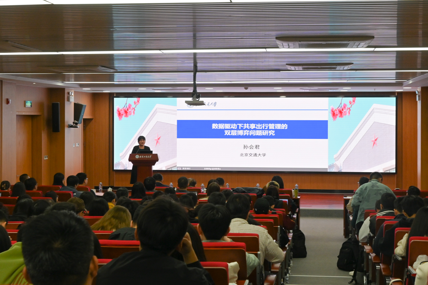 韓戰(zhàn)鋼教授和孫會君教授分別以《交叉應(yīng)用背景下的學(xué)科內(nèi)涵凝練》和《數(shù)據(jù)驅(qū)動下共享出行管理的雙層博弈問題研究》為題進(jìn)行學(xué)術(shù)交流。論壇活動下半場,北京師范大學(xué)系統(tǒng)科學(xué)學(xué)院樊京芳教授、在讀博士生李艾紋、北京工商大學(xué)于重重教授分別就《系統(tǒng)科學(xué)理論在地球復(fù)雜系統(tǒng)的應(yīng)用》《博士開題經(jīng)驗(yàn)分享》和《博士生學(xué)業(yè)指導(dǎo)》為題進(jìn)行分享和指導(dǎo)。參會的師生對專家報告的內(nèi)容表現(xiàn)出極大的興趣,并就相關(guān)問題進(jìn)行了互動交流。