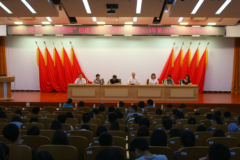 6月3日,學(xué)校“平安校園”創(chuàng)建工作學(xué)生表彰大會暨2015年第16屆心理健康節(jié)閉幕式在良鄉(xiāng)校區(qū)舉行。黨委副書記盧思鋒出席大會并講話。保衛(wèi)工作部部長頓勁松、黨委宣傳部部長張春萍、后勤管理處處長盧燦寬、團委書記呂良、心理素質(zhì)教育中心主任劉立新,各學(xué)院黨總支副書記、輔導(dǎo)員、校院兩級主要學(xué)生干部及各班安全委員、心理委員共370余人參加活動?;顒佑蓪W(xué)生工作部部長呂素香主持。