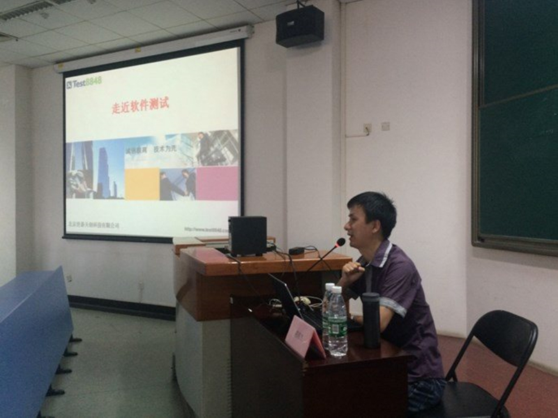 面向13級同學,現任Test8848軟件測試中心兼任北京世碁天科技有限公司總經理,中國銀行核心系統測試經理,工信部數據庫、自動化測試專家姚有杰帶給大家“移動互聯和金融行業軟件測試”。他以大家經常使用的記事本的Bug為例介紹什么是軟件測試,以“12306網站事件”介紹什么是軟件性能,讓大家更深刻的認識到軟件測試的重要性。同時,他介紹了性能測試的一般過程以及軟件測試人員需要的知識和技能。他指出,軟件測試是一個新黃金職業,為同學們未來的專業實習和職業發展描繪出一個新的空間和選擇。