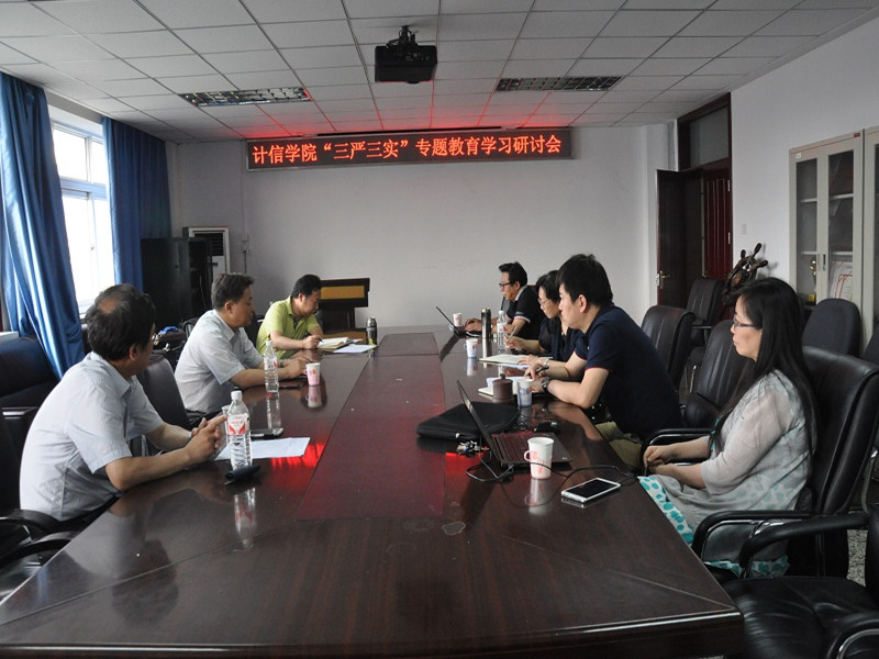 按照學校黨委關于“三嚴三實”專題教育的總體要求和學院專題教育實施方案, 7月6日,計信學院在阜成路校區召開“三嚴三實”專題教育第一專題學習研討會,副校長方德英出席會議。會議由學院黨總支書記陳誼主持,學院全體班子成員參加。