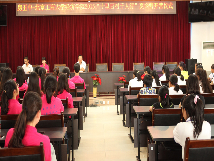 夏令營的開營儀式在良鄉(xiāng)五中階梯教室舉行。儀式上,良鄉(xiāng)五中許俊杰校長對實踐分團表示了誠摯的歡迎,感謝和支持,并指出“十村百鄉(xiāng)千人行”活動不僅能夠讓學(xué)生們感受社會發(fā)展、人文發(fā)展,而且它能使中學(xué)生擁有信仰和前瞻性,并幫助他們對未來有一定的規(guī)劃。學(xué)院團總支書記鄭光對良鄉(xiāng)五中多年來對社會實踐的支持表示了感謝,同時對實踐團的學(xué)生提出了要遵守紀(jì)律、注意安全的要求。